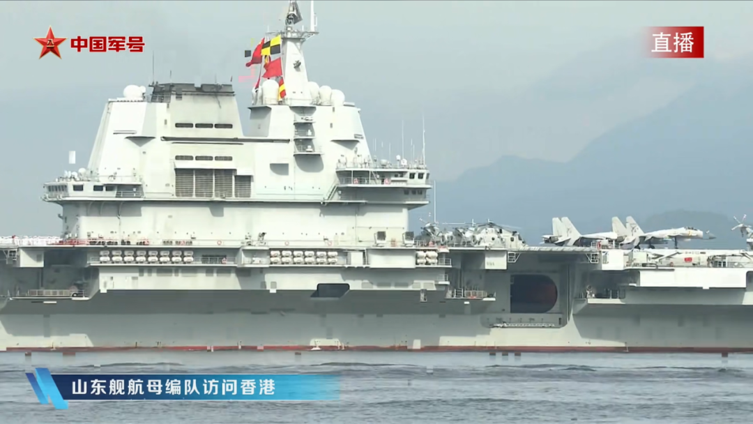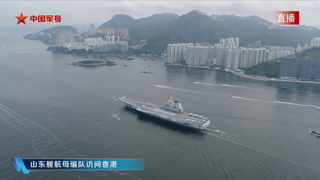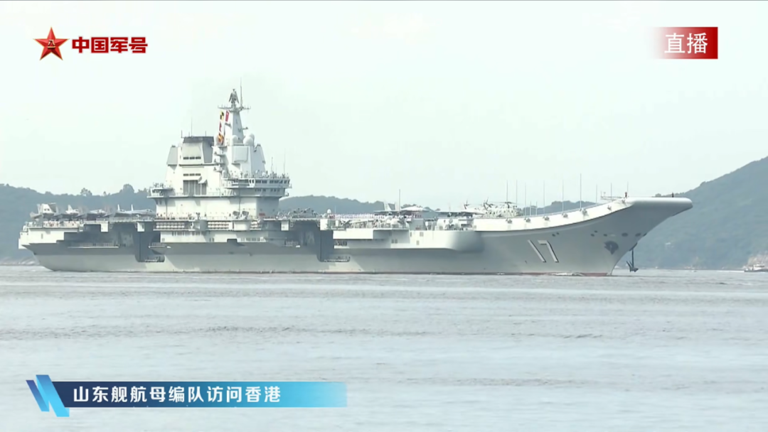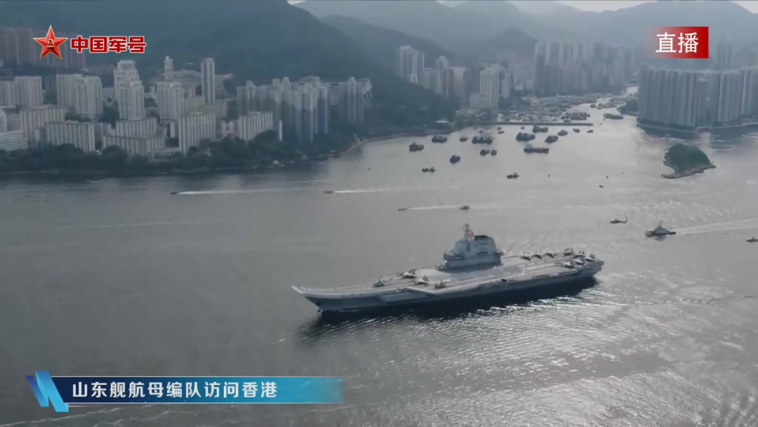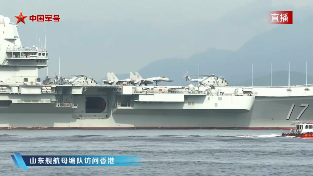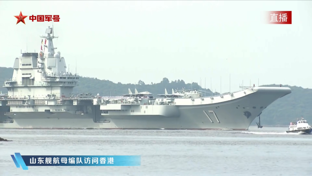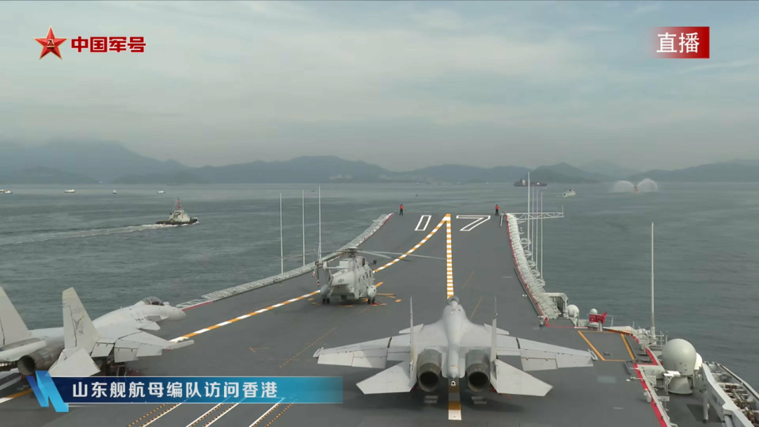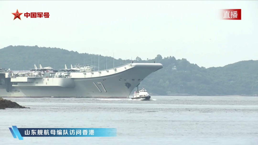 中国军号香港7月3日电(记者彭洪霞 、张懋瑄)在香港回归祖国28周年之际,由中国人民解放军海军航空母舰山东舰,导弹驱逐舰延安舰、湛江舰及导弹护卫舰运城舰组成的航母编队,携多型舰载战斗机、直升机和陆战队员,于3日上午抵达香港特别行政区,开启为期5天的访问活动。
