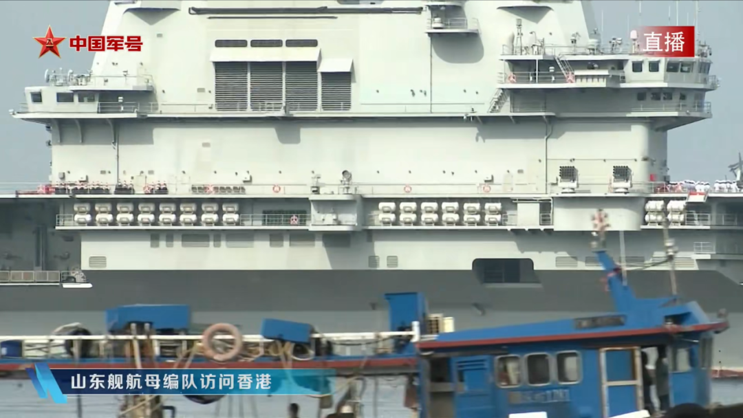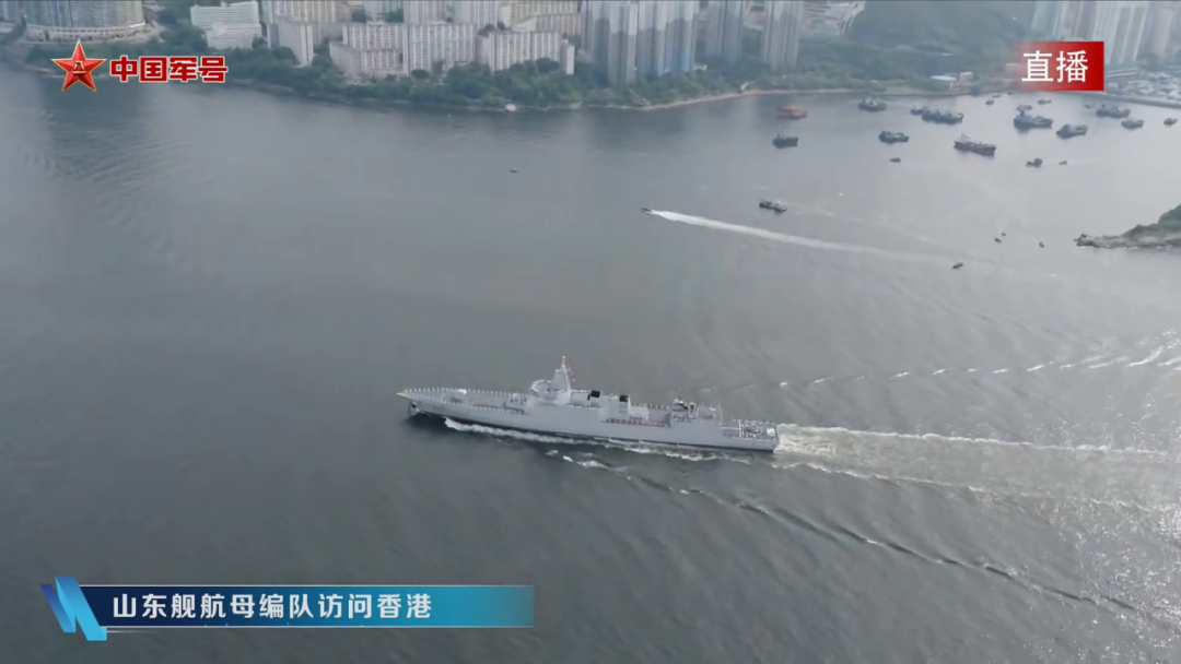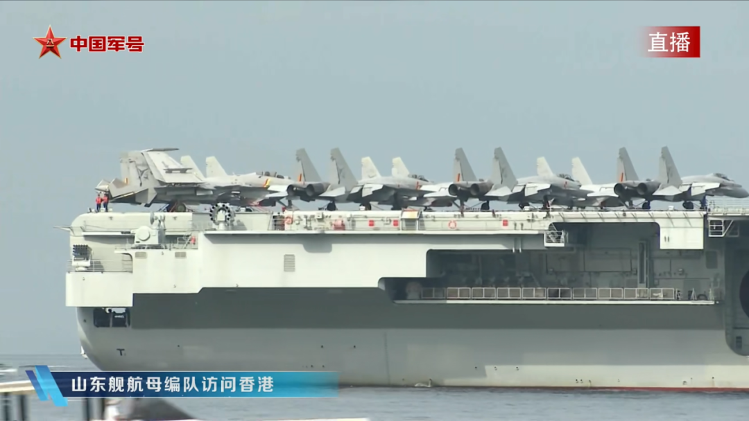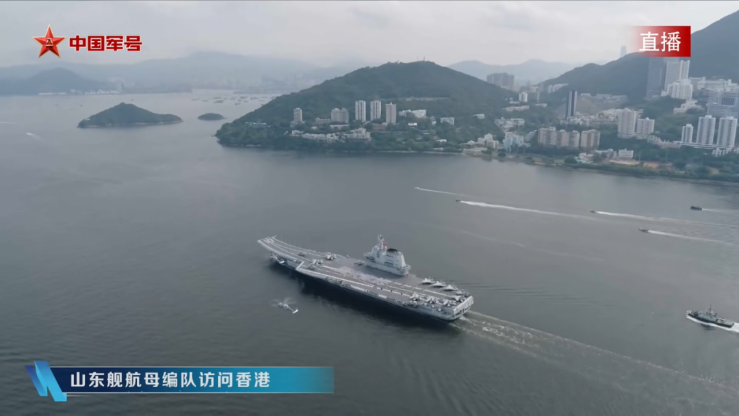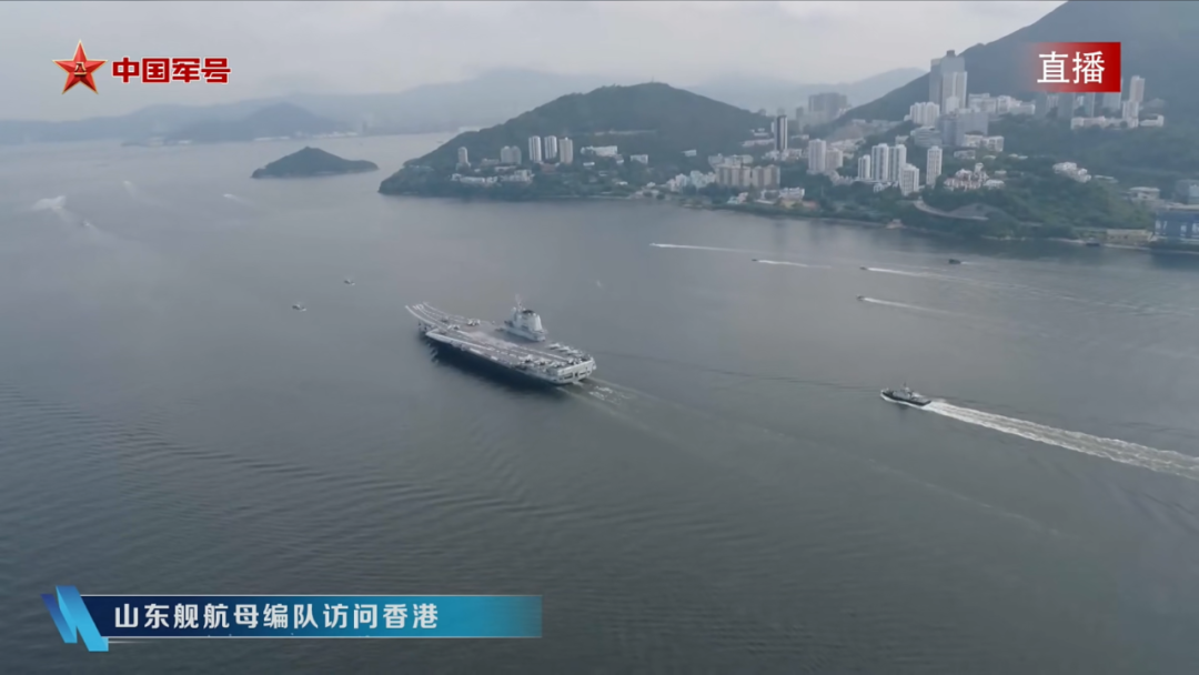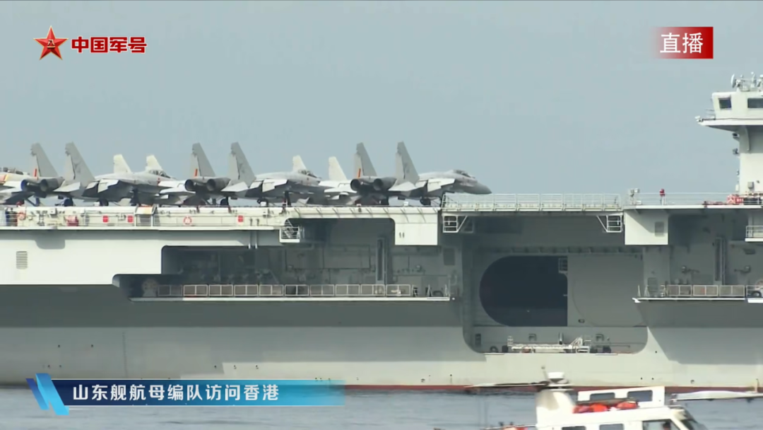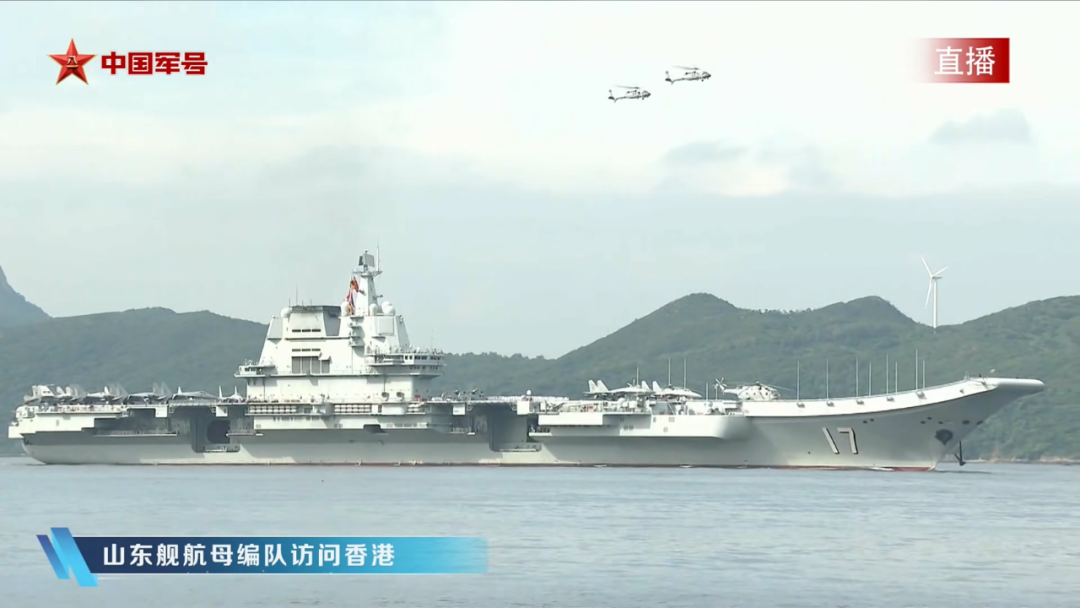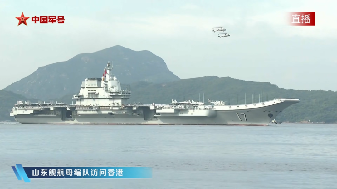 中国军号香港7月3日电(记者彭洪霞 、张懋瑄)在香港回归祖国28周年之际,由中国人民解放军海军航空母舰山东舰,导弹驱逐舰延安舰、湛江舰及导弹护卫舰运城舰组成的航母编队,携多型舰载战斗机、直升机和陆战队员,于3日上午抵达香港特别行政区,开启为期5天的访问活动。