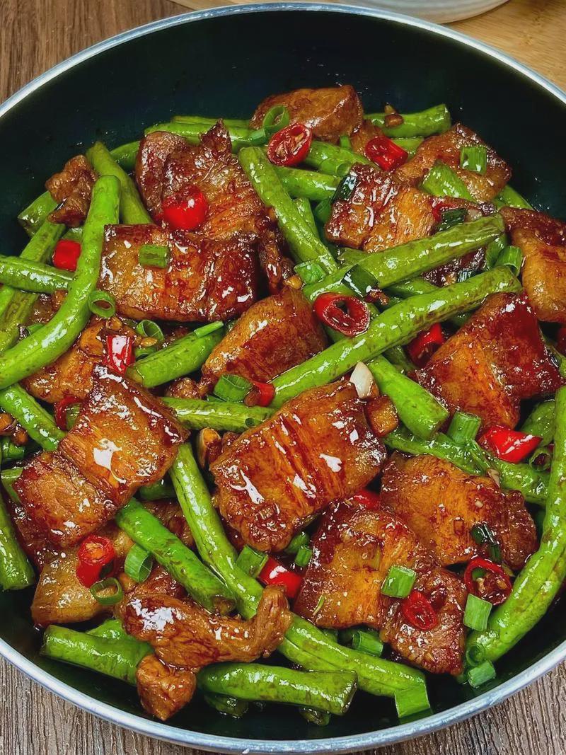 炒豆角五花肉也是味蕾党的福音。五花肉煸出油后下豆角猛炒,放干辣椒、蒜末和酱油,炒到豆角微焦带脆,那是下饭神器里的典范。吃到最后,锅底那点“锅巴豆角”甚至比肉都香。