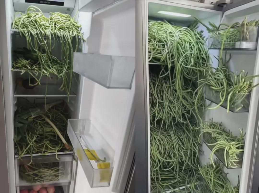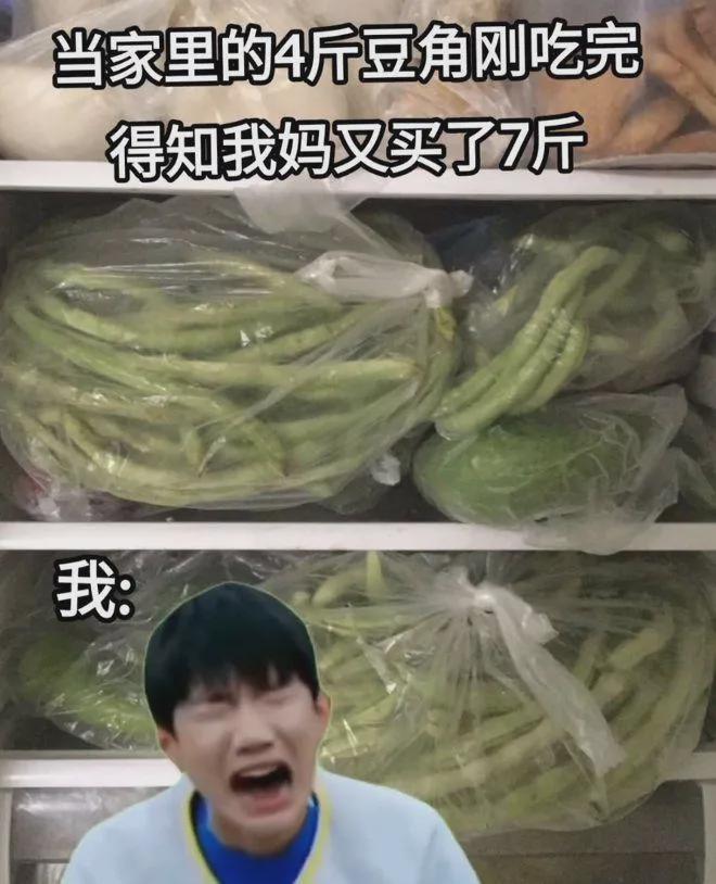 “我家冰箱冷冻层塞满了豆角,冷藏层还是豆角,连门缝里都卡着两根!”