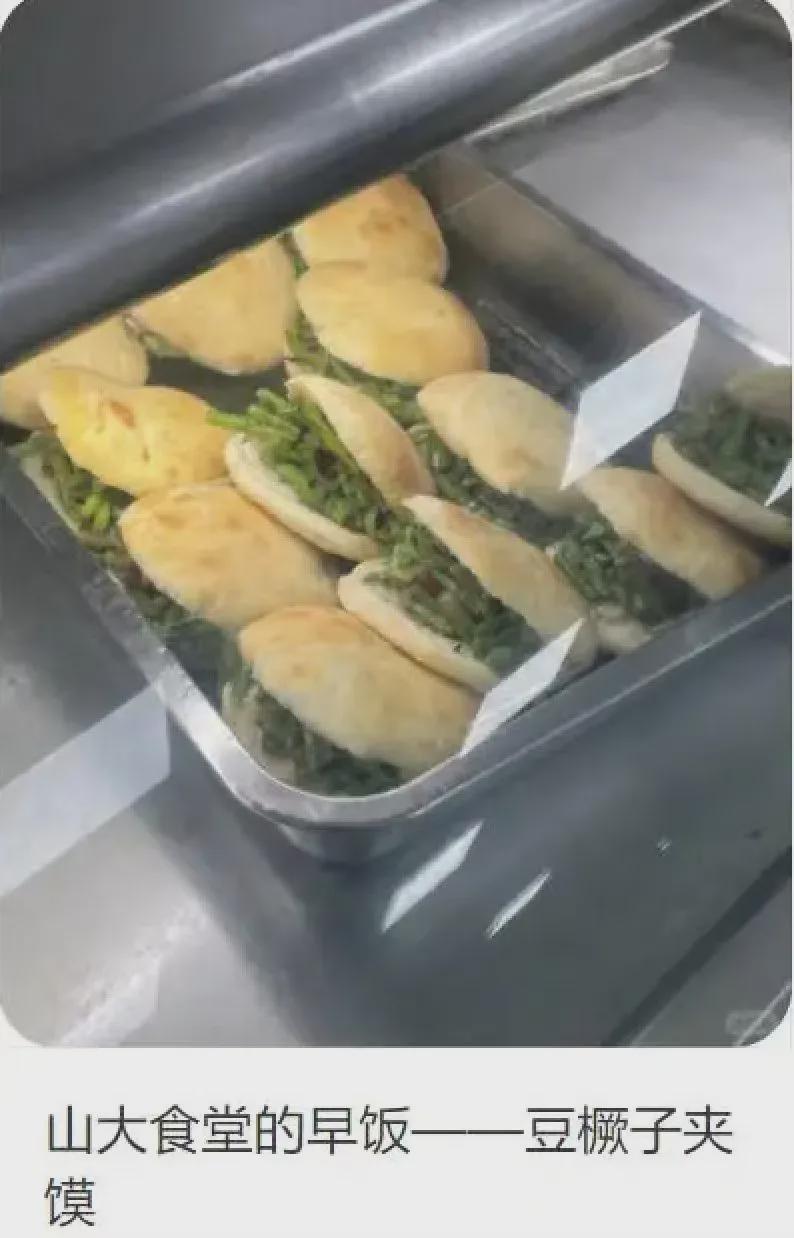 最绝的是济南某高校食堂。因为豆角采购太多,厨师连馍里都撒豆角丁,被学生戏称为“豆角刺客”。有学生吐槽:“昨天吃了一口肉夹馍,肉没吃出来,嚼到豆角时差点duang过去!”
