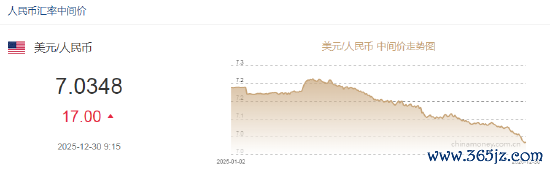 12月30日浙商配资,人民币兑美元中间价报7.0348,下调17点。