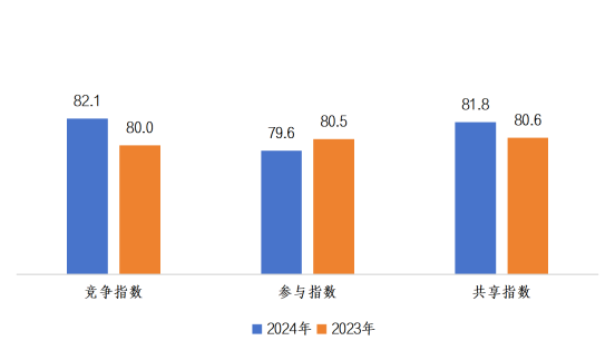 从发展维度看,数字竞争(86.0分,+2.3分)、参与(85.6 分,+1.4分)、保护(85.2分,+2.5分)指数均显著提升,消费者对创新应用丰富度、消费维权效率、交易安全的认可度大幅提高。尽管数字共享指数(88.6分,-1.2分)出现回落,但70.6%的受访者认可数字经济提升个人生活质量,折射出技术进步对民生的直接赋能。