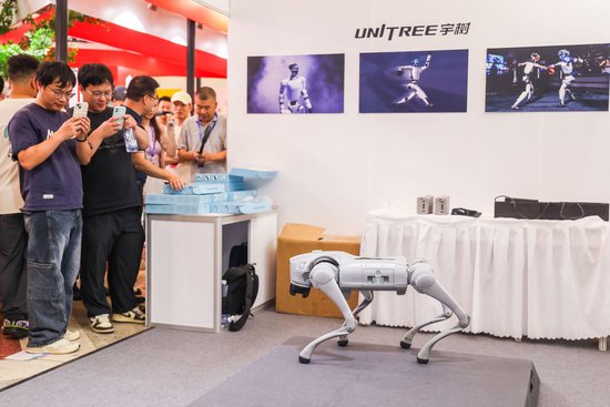 此外,活力十足的机器人也成为众人围观的对象。宇树科技的人形机器人G1亮相,用流畅的动作与观众互动。乐享科技旗下的履带机器人W-Bot植入了公司自研的意识仿生模型,可以精准捕捉人们的情绪,并用丰富的肢体语言给出回应,满足院落安防和家人的陪伴需求。工作人员表示,人们的消费观念正在升级,会更愿意购买懂自己的产品,机器人恰好可以成为家人和伙伴。