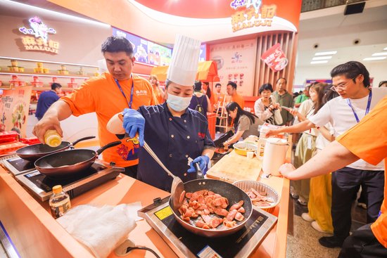 好博会由新浪财经主办牛客栈,阿里巴巴、京东、拼多多、抖音电商联合主办,微博、美团为战略合作伙伴。走进面积达1.5万平方米的展区,仿佛来到充满烟火气的集市,展商们纷纷摆出特色美食,热情邀请人们免费试吃。
